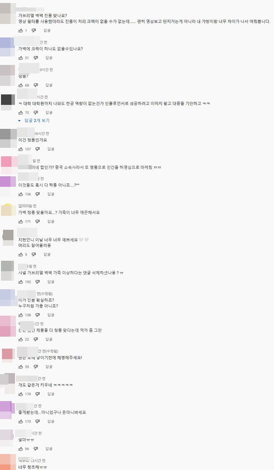 특히 작년 6월 박지현이 자신의 유튜브 채널을 통해 명품가방을 소개한 영상에는 "이거 진품 확실하죠? 누구처럼 가품 아니죠?", "가죽 이상하다는 댓글 왜 삭제하시나요?", "정품 맞을까요...? 가죽이 너무 매끈해서요" 등의 댓글이 달렸다.