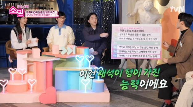 5일 방송된 tvN 소개팅 프로그램 ‘스킵’에서는 연애 초능력이 생기면 어떤 능력을 갖고 싶은지 질문하자, MC넉살이 “무제한으로 재석이 형이 가진 능력”이라고 하며 유재석의 막대한 재력에 대해 언급했다.