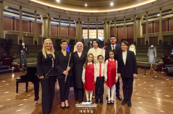 이어 두 여사는 국민도서관 내 마련된 튀르키예 전통의상 전시와 음악공연을 함께 관람하며 친교의 시간을 이어갔다. 전시 관람 중 에르도안 여사는 앙카라 염소털로 만든 전통 스카프와 가방을 김 여사에게 즉석에서 선물했다. 김혜경 여사는 “튀르키예의 다채로운 문화와 예술을 가까이에서 경험할 수 있어 뜻깊다”며 감사 인사를 전했다.